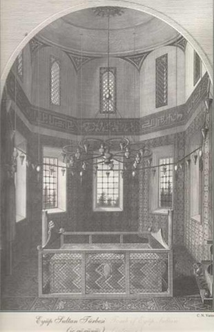1458’de yaptırılan, duvarları çeşitli dönemlere ait çinilerle kaplı Eyüp Sultan Türbesi’nin iç avluya bakan “niyet penceresi” yüzyıllardır dertlerine deva arayanlar tarafından ziyaret edilir. Türbe, kesme taştan sekizgen gövdesi, kurşun kaplı kubbesi, iki katlı pencereleri ile klasik dönem Osmanlı türbelerinin ilk ve en önemli örneklerinden biridir.