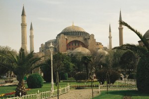 Bizans tarihçilerine göre, Ayasofya’nın yerinde İmparator I. Konstantinos (275-337) tarafından 326’da yaptırılan bir kilise vardı. Bu bina bir ayaklanma sonucunda yanınca İmparator II. Konstantinos 360 yılında yeni bir kilise yaptırdı. Bu kilise, Hz. İsa’ya adanarak Megalo Eklesia (Büyük Kilise) adıyla anılmaya başladı. Yaklaşık olarak bugünkü kilisenin büyüklüğünde olan bu binada beş nef ve galeriler bulunuyor, ön kısmında ise narteks ve atrium yer alıyordu. Bu yapıdan günümüze kalabilen tek kısım bugünkü binanın kuzeydoğu köşesinde yer alan hazine bölümüdür. 404’te bir ayaklanma sırasında yakılan Büyük Kilise hemen onarılarak 415’te II. Theodosius tarafından yeniden açıldı. Ancak, 532’de çıkan büyük Nika ayaklanması sırasında yeniden yakıldı ve bu kez büyük hasara uğradı. Aynı yıl imparator Justinianus tarafından yeniden inşa ettirilmeye başlandı. 5 yılda tamamlanan ve 361 milyon altına malolan bu binaya Justinianus tarafından “Kutsal Bilgelik” anlamına gelen “Hagia Sofia” ismi verildi. Ayasofya, uzun yıllar imparatorların taç giyme kilisesi olarak kullanıldı. Çeşitli isyanlar sırasında ve 1204 yılında IV. Haçlı seferinde yağma edilen bina birçok kez hasara uğradı, ancak, 869, 986, 1317 yıllarında çeşitli onarımlardan geçirilerek günümüze kadar gelmeyi başardı.